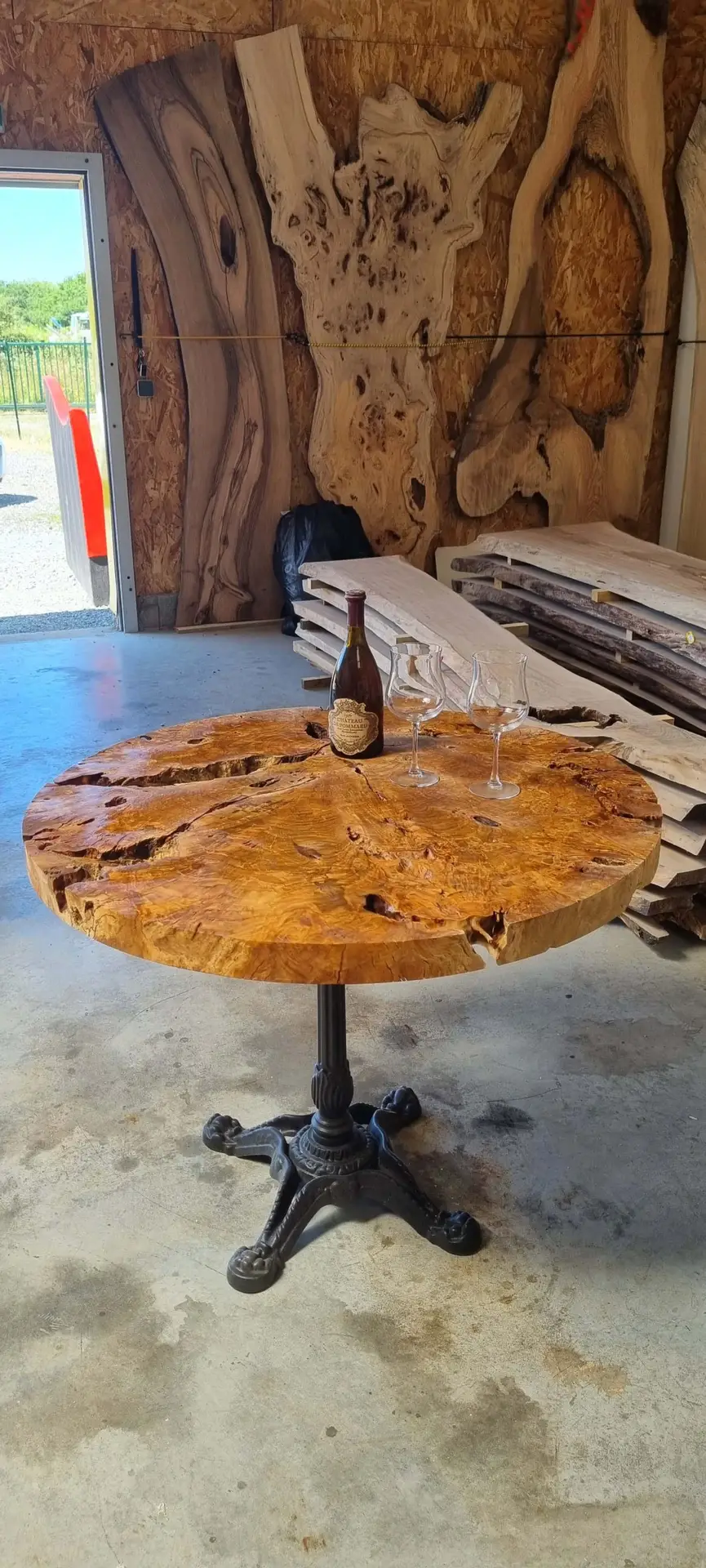 La table est de diamètre 0.9 m. Pied de table type bistro parisien.